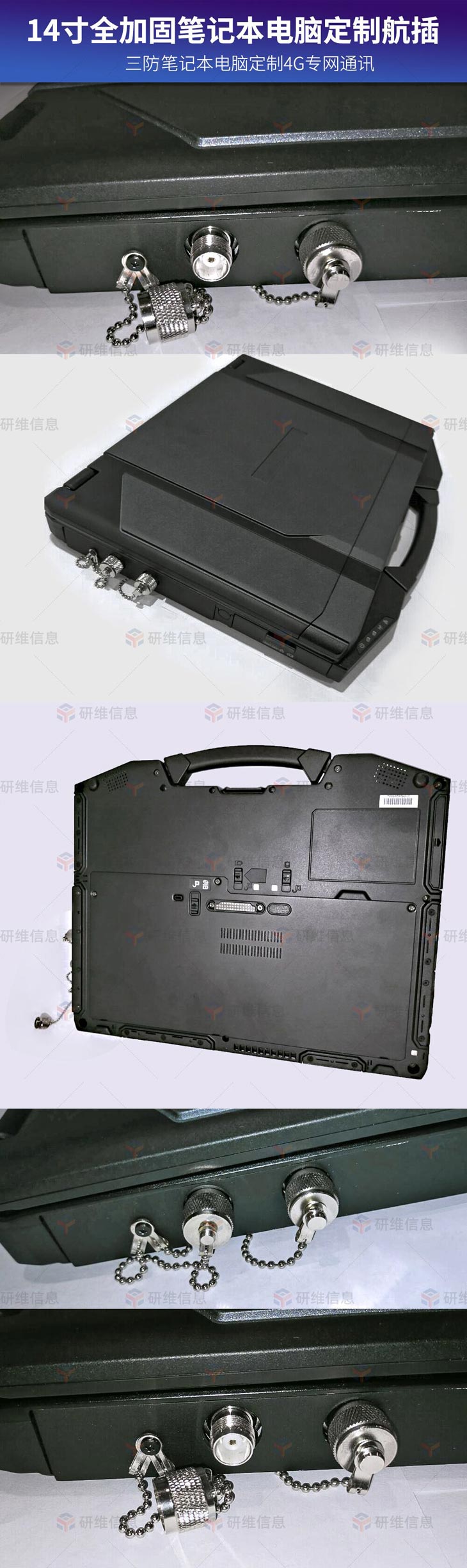研维定制14寸全加固笔记本电脑定制航插|三防加固笔记本电脑定制4G专网通讯14寸加固笔记本电脑E474定制4G专网M350模块,该模块是集成在机身