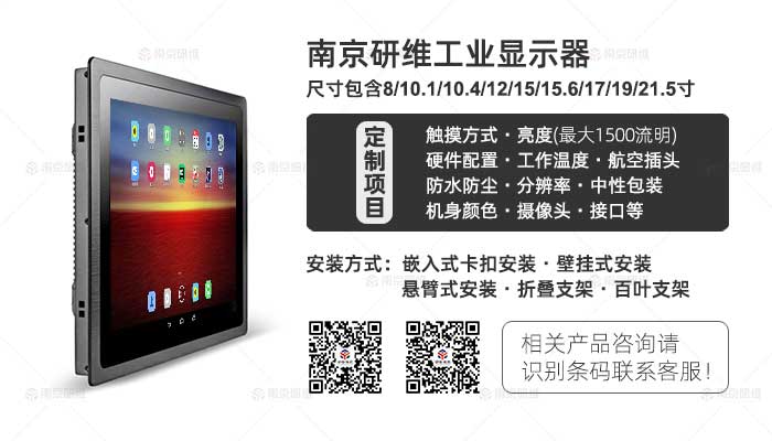 接口:电源接口×1、USB×4(12寸(含12寸宽屏不含正屏)以下USB×2)、网口×1、VGA×1、HDMI×1、WiFi×1、COM×2、音频输入输出*2